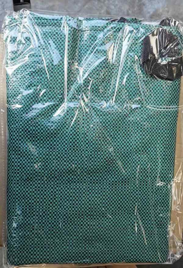 材質:PP/PE雙面覆膜綠黑格篷布+4個丙綸織帶提手